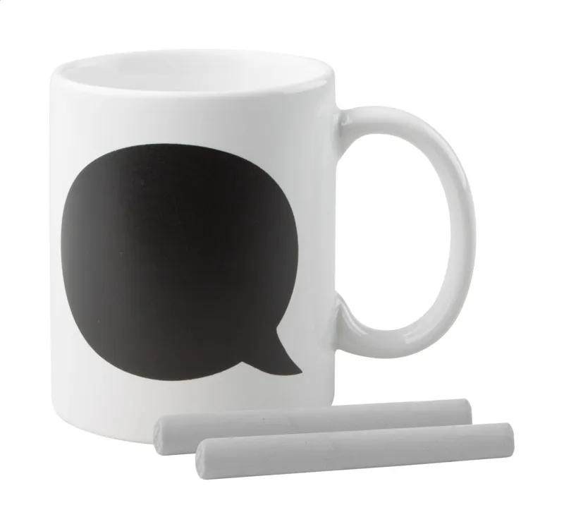Kerámia bögre rajzolható felülettel, 2 db fehér krétával szállítjuk, 300 ml. Díszdobozban szállítjuk.