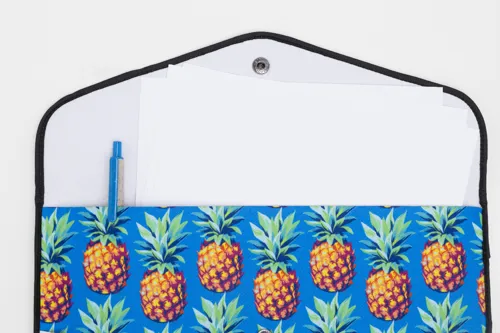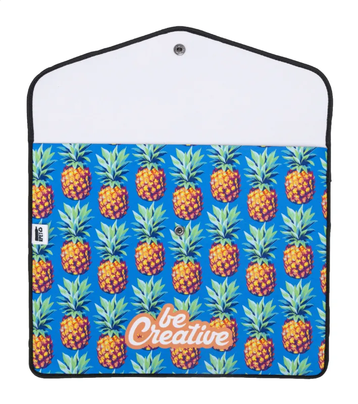 Egyedi gyártású, RPET neoprén dokumentum- és laptop táska, teljes felületén szublimációs nyomtatott grafikával. Akár 15"-os laptopokhoz is alkalmas. Minimális rendelési mennyiség: 25 db.