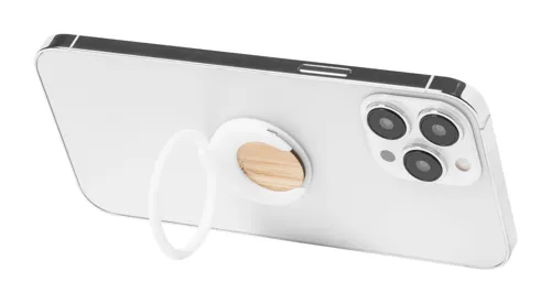 Kör alakú ABS műanyag mobiltelefon-tartó gyűrű öntapadós aljzattal és bambusz bevásárlóérmével.