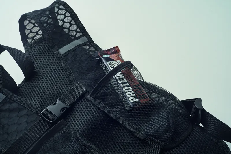 Víztartályos sport hátizsák vízlepergető 420D PU/nejlon anyagból, hálós részletekkel. 1500 ml-es EVA víztasakot tartalmaz PVC csővel és zárral. Könnyű, tartós, ideális szabadtéri tevékenységekhez.