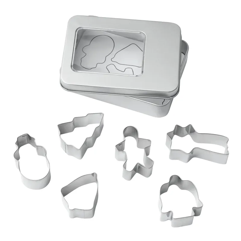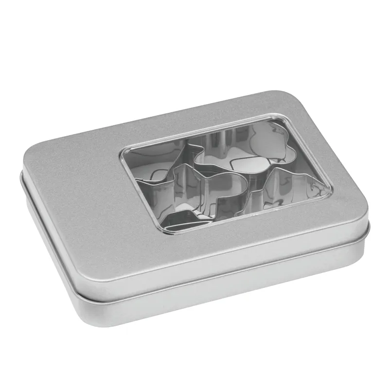 COOKIE sütiforma szett 6 db rozsdamentes acél formával, különböző karácsonyi motívumokkal – süteményekhez ideális, rozsdamentes acél dobozban, betekintő ablakkal
