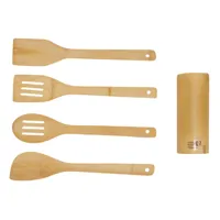 COOKING TIME fakanál készlet: 5 részes bambusz készlet, 4 db fakanál és tartó