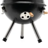COOKOUT barbecue: fém test 2 db szellőző ablakkal, kivehető tálca levegőztető lyukakkal, 1 kivehető grill tálca kb. 29 cm átmérővel, fedél szellőző ablakkal és fa fogóval, 3 csattal zárható fedél, 3 db fém láb műanyag végekkel, ajándékdobozba csomagolva