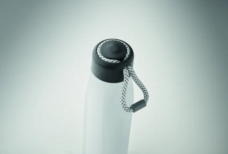Duplafalú, újrahasznosított rozsdamentes acélból készült termoszpalack (90% újrahasznosított rozsdamentes acél és 10% rozsdamentes acél), zsinóros PP fedéllel. Szivárgásmentes. Űrtartalom: 500 ml.