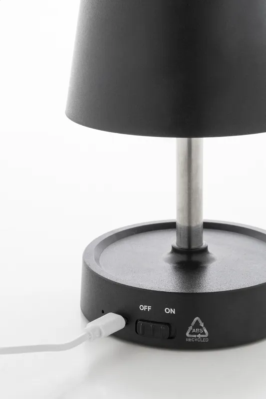 Teleszkópos asztali lámpa újrahasznosított ABS műanyagból, 12 LED-del, állítható fényerővel és 1200 mAh-s USB újratölthető akkumulátorral. USB töltőkábellel.