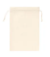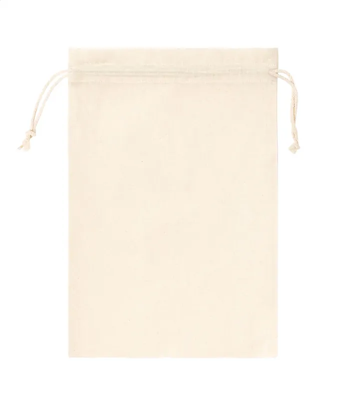 Többször használható pamut tároló zacskó húzózsinórral. 100% pamut, 105 g/m².