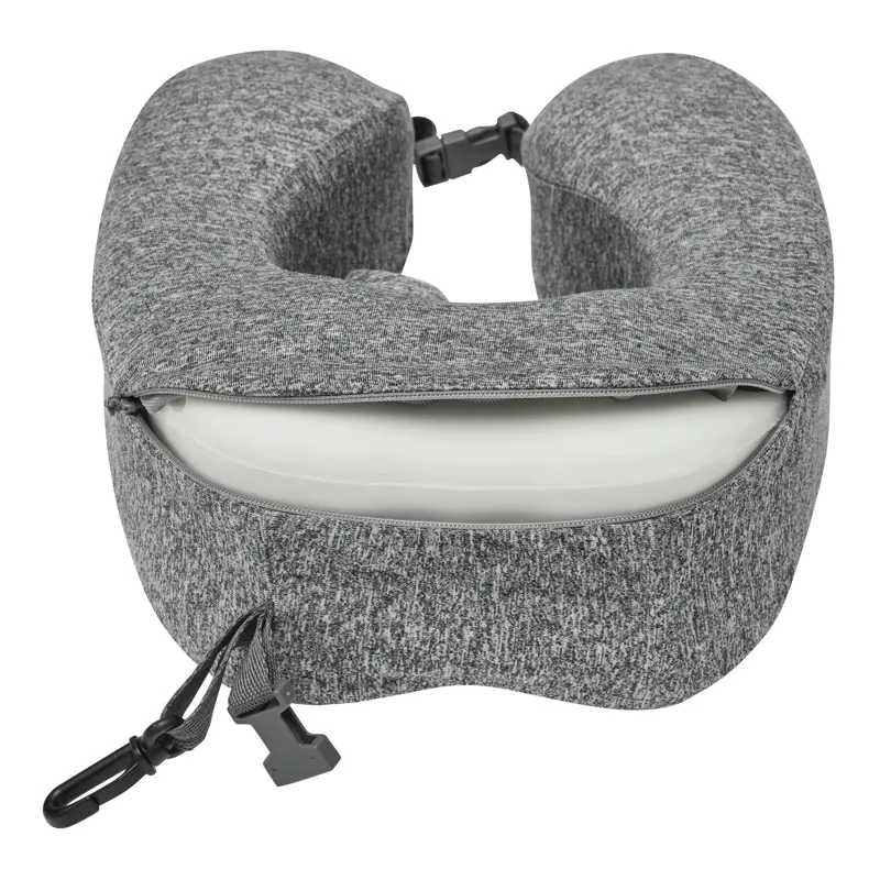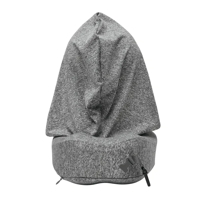 COSYWRAP memóriahabos nyakpárna: beépített kapucnival a fej és az arc takarására, állítható patentzárral, levehető és mosható jersey huzattal, memóriahabbal töltve az optimális kényelem érdekében, kis karabinerrel ellátott hurok a felakasztáshoz vagy rögzítéshez szállítás közben (a karabiner NEM alkalmas mászásra), a nyakpárna feltekerhető és patentzárral zárható a helytakarékosság érdekében