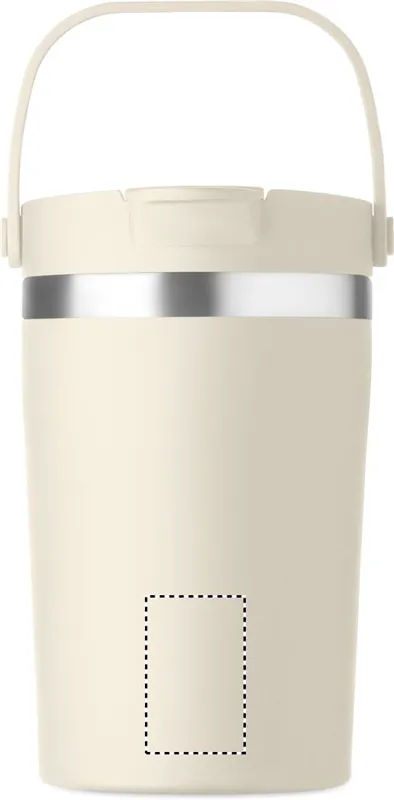 Duplafalú, újrahasznosított rozsdamentes acél (90% újrahasznosított rozsdamentes, 10% rozsdamentes acél) pohár PP 2 az 1-ben ivónyílással és szívószálas fedéllel. Szivárgásmentes. Űrtartalom: 350 ml.