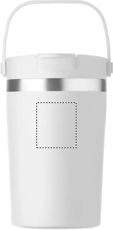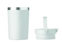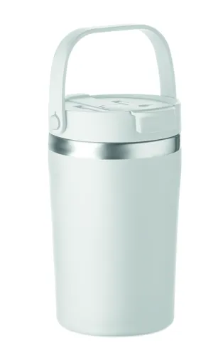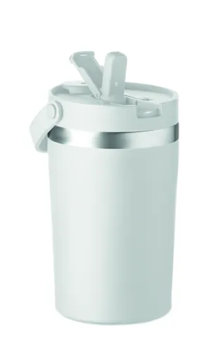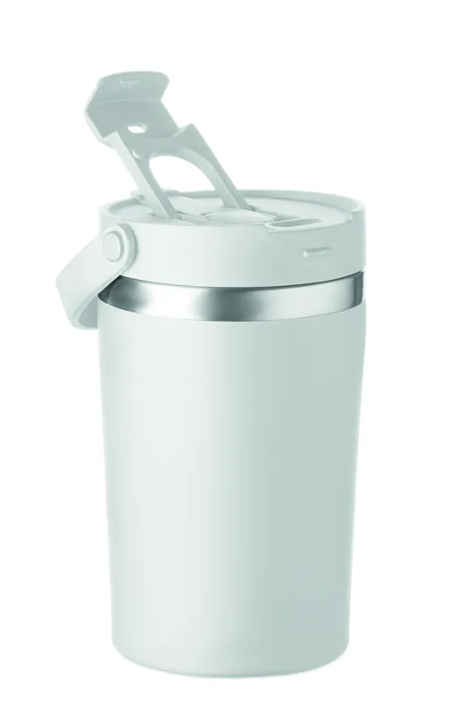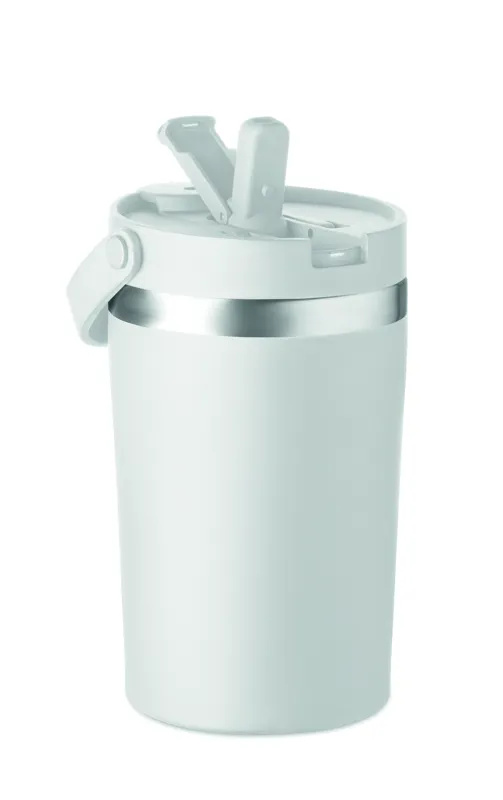 Duplafalú, újrahasznosított rozsdamentes acél (90% újrahasznosított rozsdamentes, 10% rozsdamentes acél) pohár PP 2 az 1-ben ivónyílással és szívószálas fedéllel. Szivárgásmentes. Űrtartalom: 350 ml.