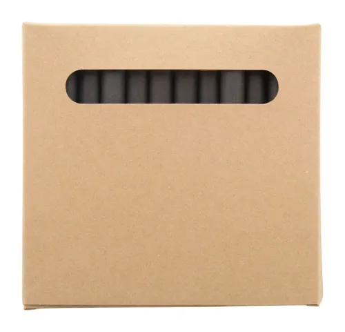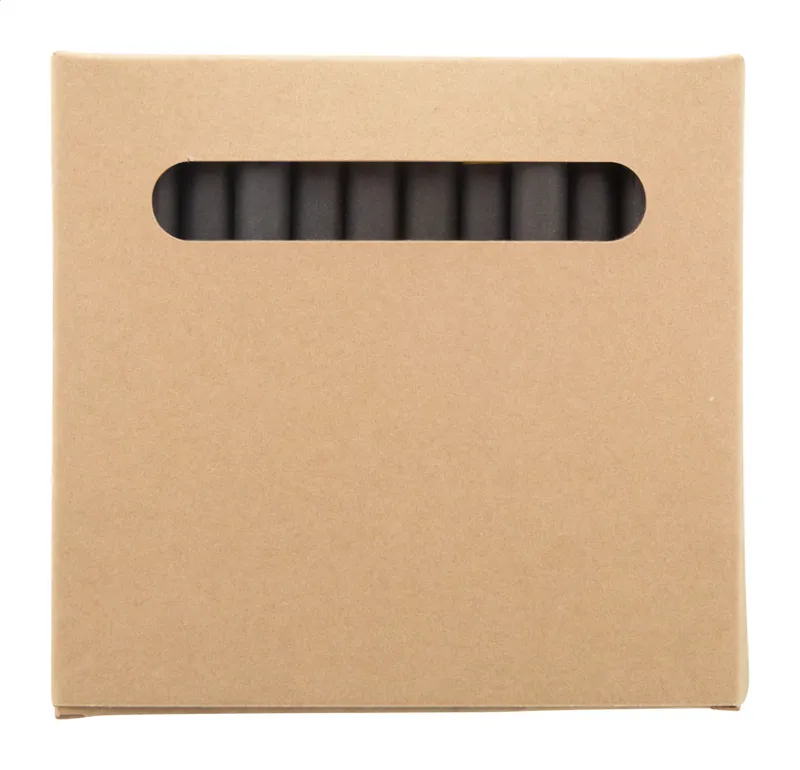 Fekete papír borítású színes 12 darabos zsírkrétakészlet, egyedi kraft papír dobozzal. Az ár tartalmazza a digitális nyomtatást. Minimális rendelési mennyiség: 100 db.