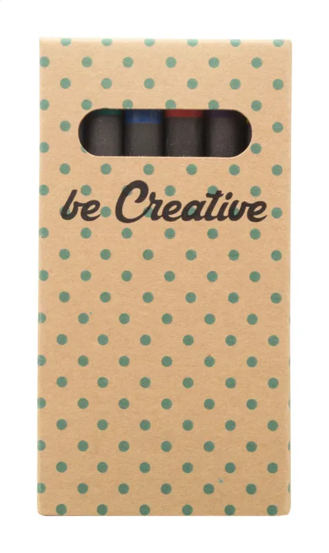 Fekete papír borítású színes 6 darabos zsírkrétakészlet, egyedi kraft papír dobozzal. Az ár tartalmazza a digitális nyomtatást. Minimális rendelési mennyiség: 100 db.