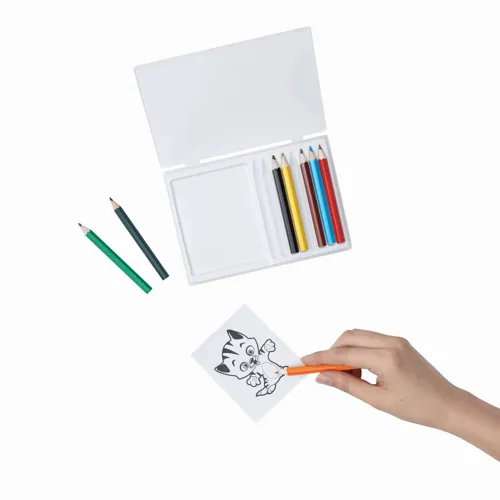 CRAZY ANIMAL színes ceruza készlet 12 db kiszínezhető rajzzal, amelyeken különböző figurák várnak a színezésre, 8 db kihegyezett színes ceruza, átlátszó dobozban