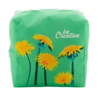 Egyedi gyártású, négyzet alakú, cipzáras 600D RPET poliészter kozmetikai táska. Az ár tartalmazza a szublimációs emblémázás költségét a termék mindkét oldalán. Minimális rendelési mennyiség: 50 db.
