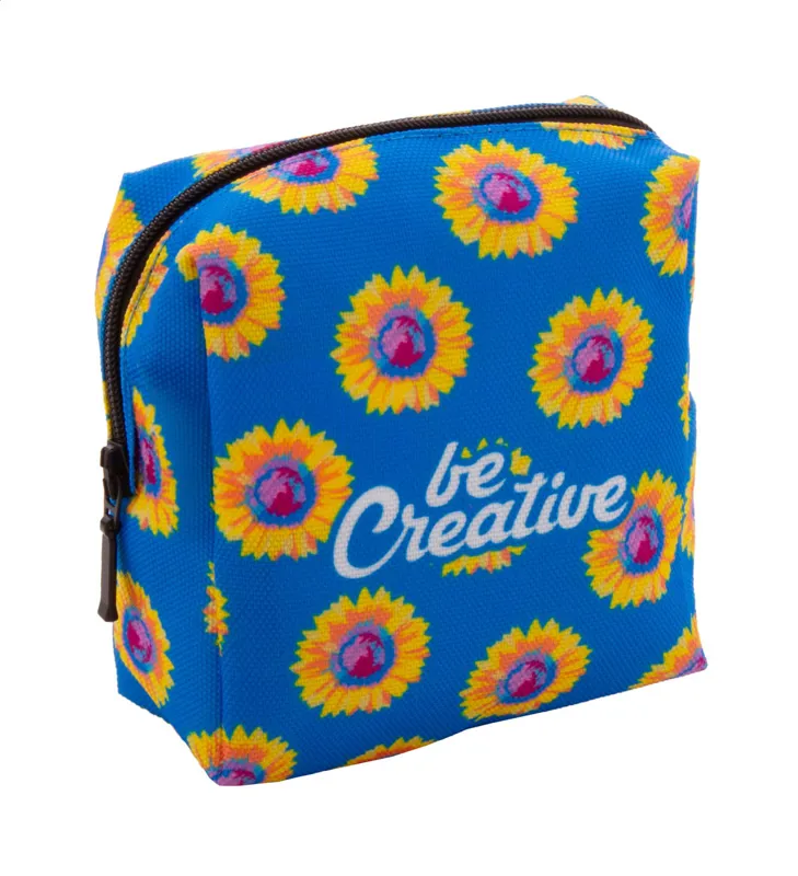 Egyediesíthető, négyzet alakú, cipzáras 600D RPET poliészter kozmetikai táska. Az ár tartalmazza a szublimációs emblémázás költségét a termék mindkét oldalán. Minimális rendelési mennyiség: 50 db.