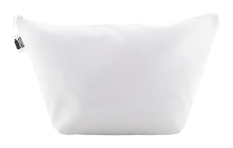 Egyediesíthető, cipzáros kozmetikai táska 600D RPET poliészterből. Az ár tartalmazza a szublimáció költségét a termék teljes felületén. Megkülönböztető RPET címkével. Minimális rendelési mennyiség: 50 db.