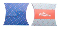 Egyediesíthető, full colour emblémázott karton párna doboz elülső záródással. Lapra szerelve szállítjuk. Minimális rendelési mennyiség: 50 db.