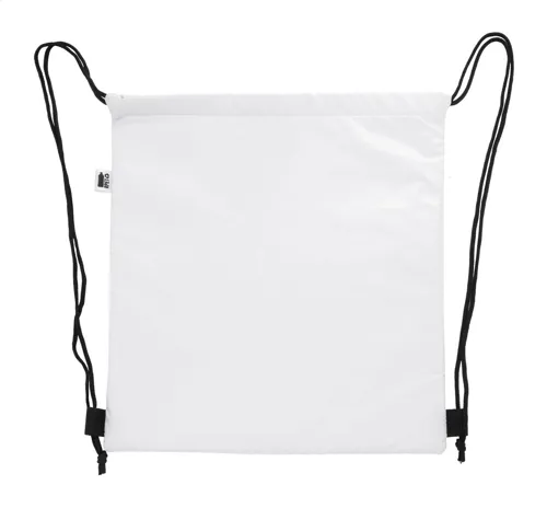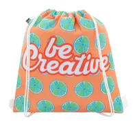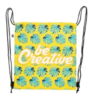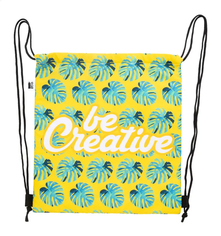 Egyedi gyártású, húzózsinóros hűtőtáska 600D RPET poliészterből, alumínium béléssel. Teljesen szublimációs nyomtatott grafikával és megkülönböztető RPET címkével. Minimális rendelési mennyiség: 25 db.