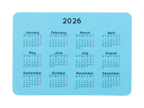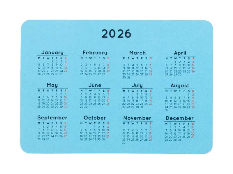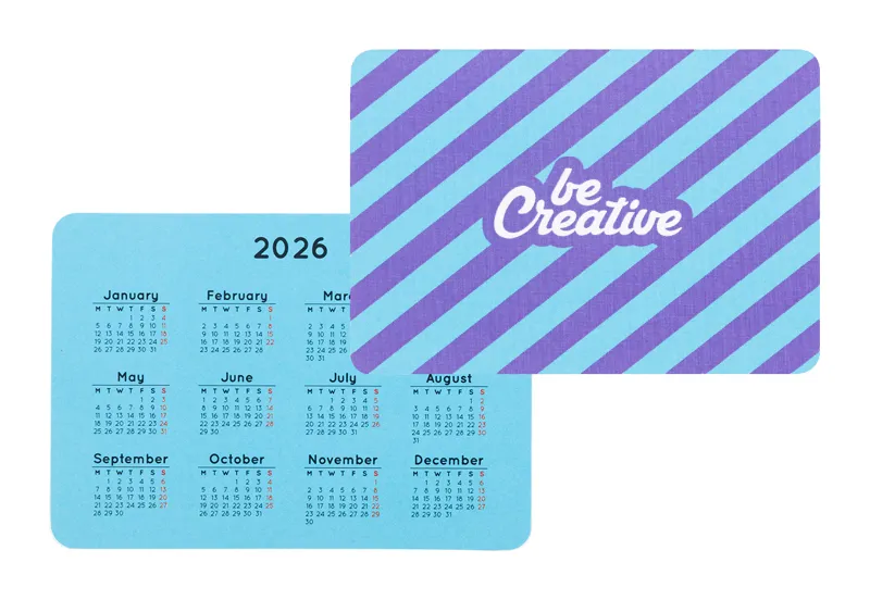 Egyedi gyártású, kisméretű papírkártya-naptár (270 g/m²) full-colour grafikákkal. Az ár tartalmazza a digitális nyomtatást mindkét oldalra. Minimális rendelési mennyiség: 250 db.