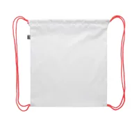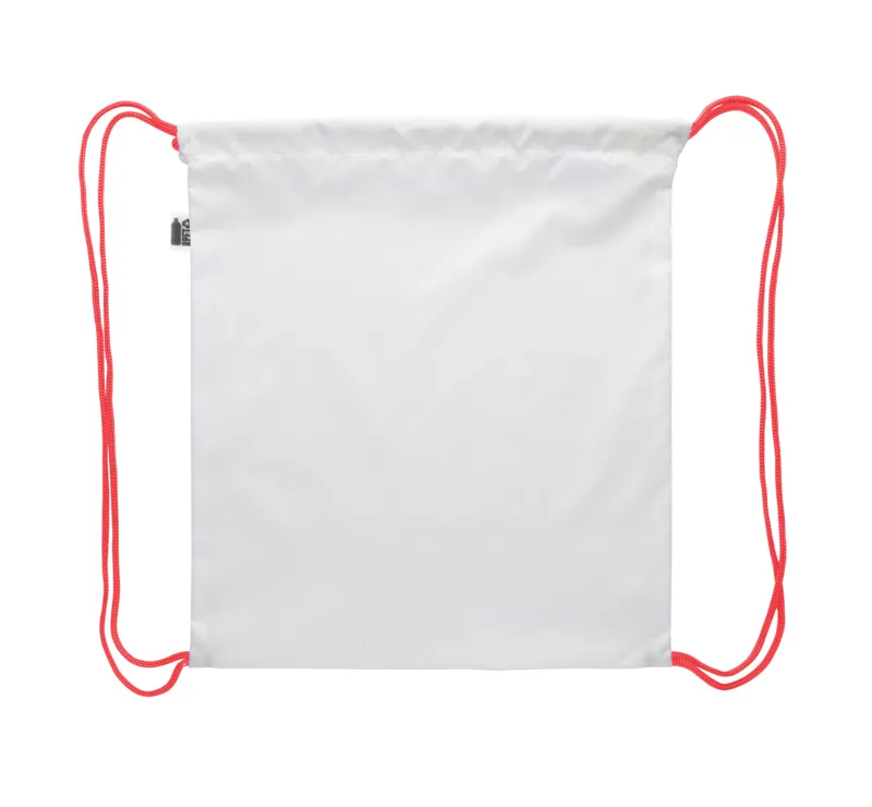 Egyedi gyártású gyerek hátizsák színes, zsinórfüles vállpánttal, 190T RPET poliészter. Teljes felületén szublimációs eljárással emblémázva és megkülönböztető RPET címkével. Minimális rendelési mennyiség: 25 db.