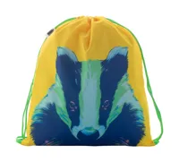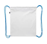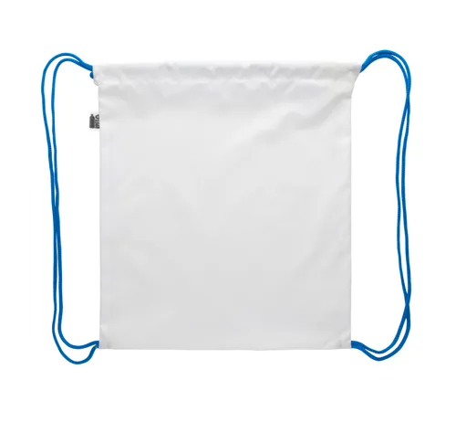 Egyedi gyártású gyerek hátizsák színes, zsinórfüles vállpánttal, 190T RPET poliészter. Teljes felületén szublimációs eljárással emblémázva és megkülönböztető RPET címkével. Minimális rendelési mennyiség: 25 db.