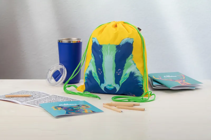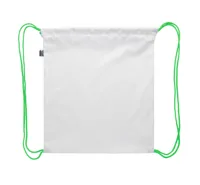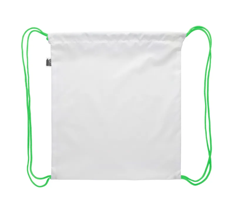 Egyedi gyártású gyerek hátizsák színes, zsinórfüles vállpánttal, 190T RPET poliészter. Teljes felületén szublimációs eljárással emblémázva és megkülönböztető RPET címkével. Minimális rendelési mennyiség: 25 db.