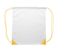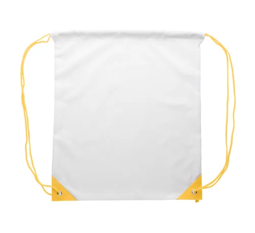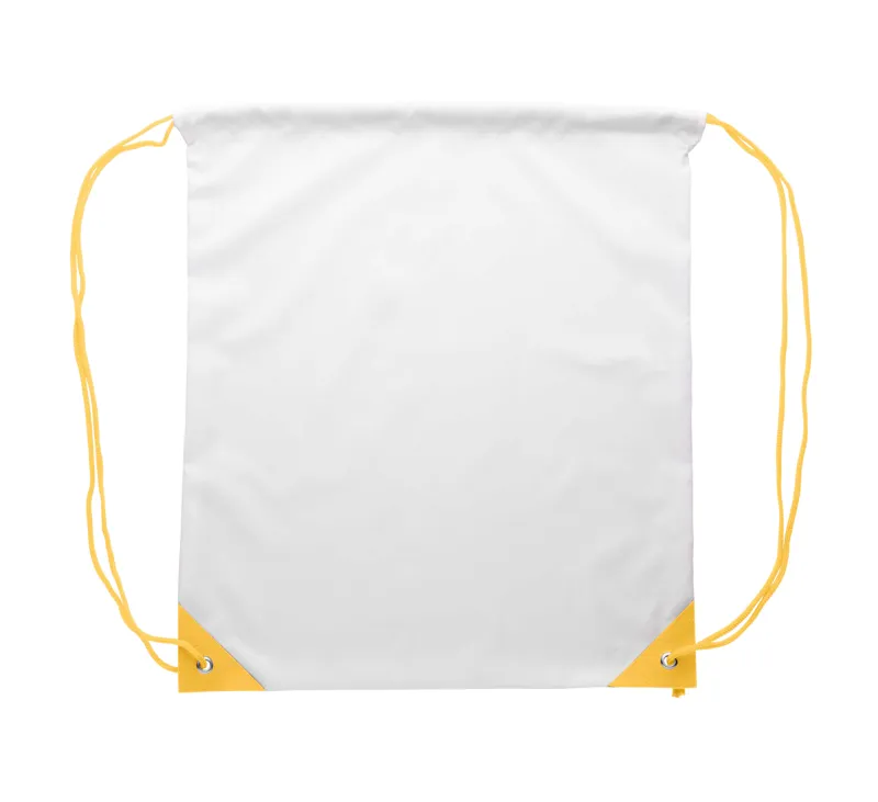 Egyedi gyártású hátizsák, megerősített PU sarkakkal és azonos színű zsinórfüles vállpánttal, 190T poliészter. Teljes felületén szublimációs eljárással emblémázva. Minimális rendelési mennyiség: 25 db.