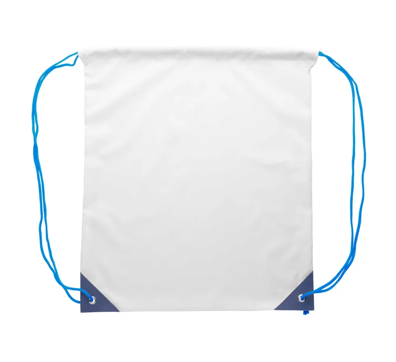 Egyedi gyártású hátizsák, megerősített PU sarkakkal és azonos színű zsinórfüles vállpánttal, 190T poliészter. Teljes felületén szublimációs eljárással emblémázva. Minimális rendelési mennyiség: 25 db.