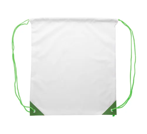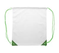 Egyedi gyártású hátizsák, megerősített PU sarkakkal és azonos színű zsinórfüles vállpánttal, 190T poliészter. Teljes felületén szublimációs eljárással emblémázva. Minimális rendelési mennyiség: 25 db.