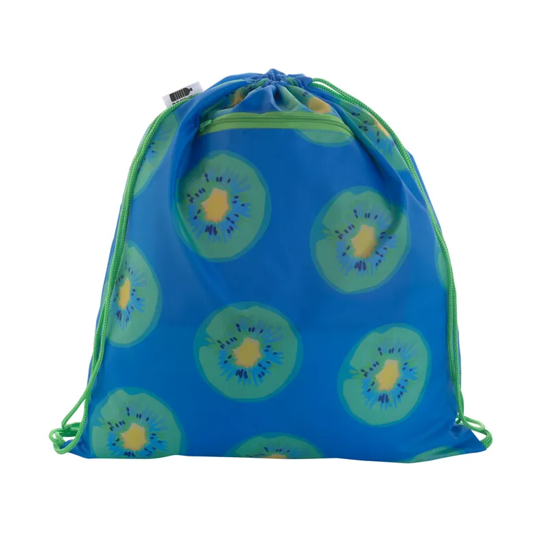 Egyedi gyártású hátizsák RFID védelemmel ellátott elülső zsebbel, 190T RPET poliészter. Teljes felületén szublimációs eljárással emblémázva, megkülönböztető RPET címkével. Minimális rendelési mennyiség: 25 db.