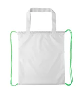 Egyedi gyártású hátizsák színes, zsinórfüles vállpánttal és hosszú hordfüllel, 190T poliészter. Bevásárlótáskaként is használható. Teljes felületén szublimációs eljárással emblémázva. Minimális rendelési mennyiség: 25 db.