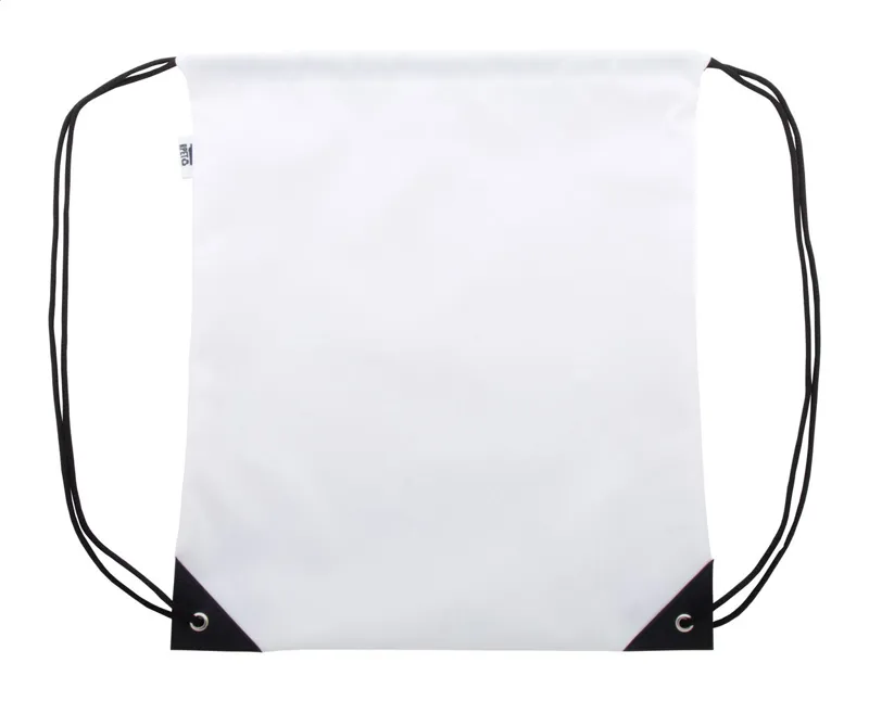 Egyediesíthető hátizsák 600D RPET poliészter anyagból, megerősített műanyag sarkokkal és vastag, egyező színű zsinórokkal. Teljes felületén szublimációs eljárással emblémázható, megkülönböztető RPET címkével. Minimális rendelési mennyiség: 25 db.
