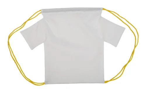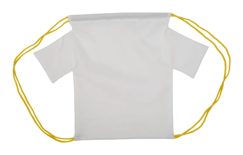 Egyediesíthető, póló alakú gyerek hátizsák színes, zsinórfüles vállpánttal, 190T poliészter. Teljes felületén szublimációs eljárással emblémázható. Minimális rendelési mennyiség: 25 db.