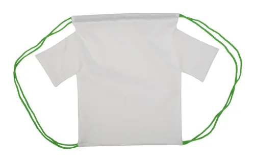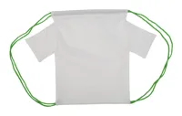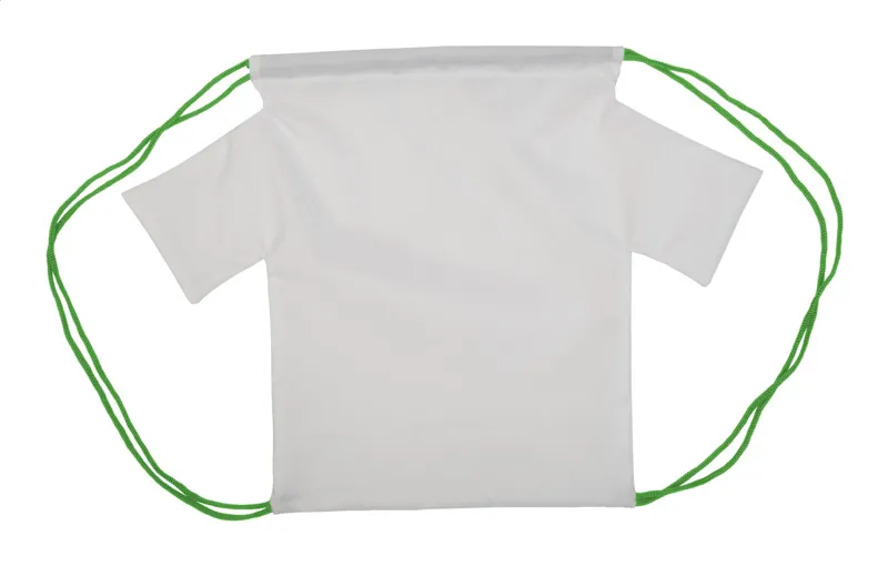 Egyediesíthető, póló alakú gyerek hátizsák színes, zsinórfüles vállpánttal, 190T poliészter. Teljes felületén szublimációs eljárással emblémázható. Minimális rendelési mennyiség: 25 db.