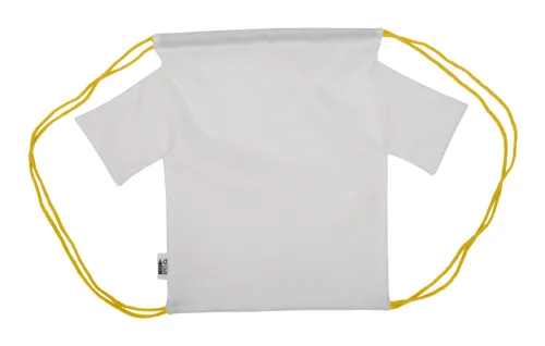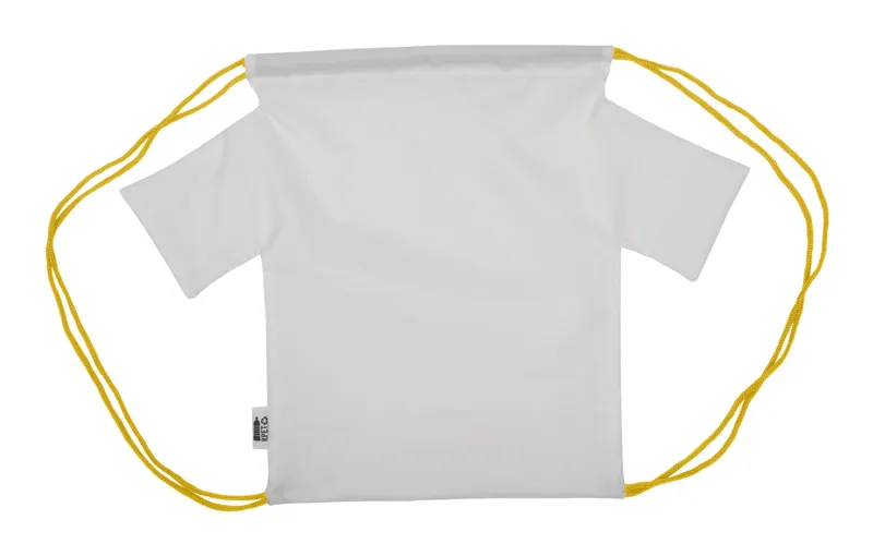 Egyediesíthető, póló alakú gyerek hátizsák színes, zsinórfüles vállpánttal, 190T RPET poliészter. Teljes felületén szublimációs eljárással emblémázható. Megkülönböztető RPET címkével. Minimális rendelési mennyiség: 25 db.