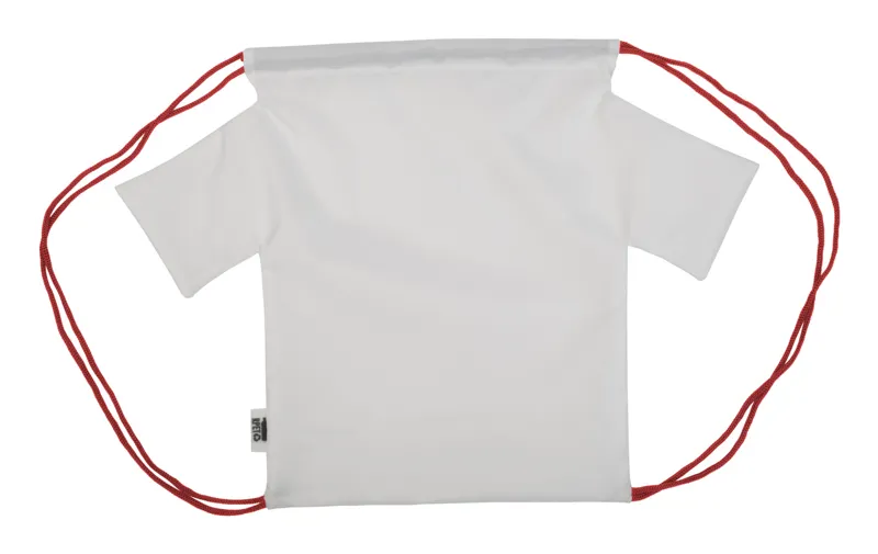 Egyediesíthető, póló alakú hátizsák színes zsinórral, 190T RPET poliészter. Teljes felületén szublimációs eljárással emblémázható, megkülönböztető RPET címkével. Minimális rendelési mennyiség: 25 db.