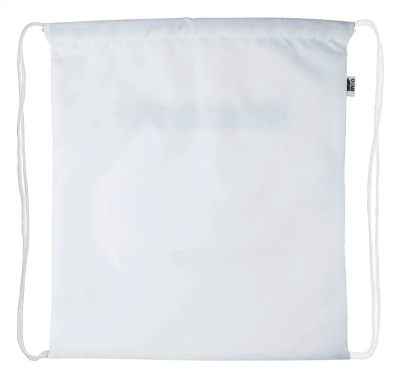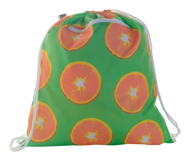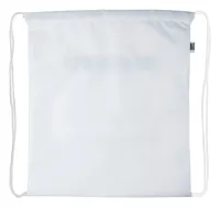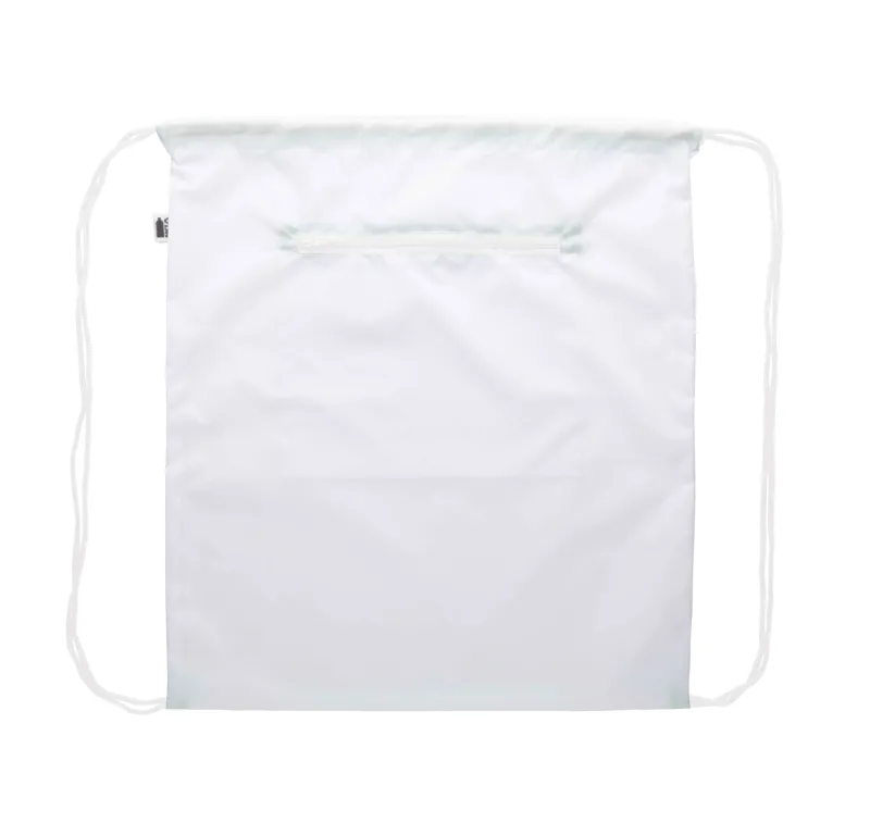 Egyedi gyártású hátizsák, zsinórfüles vállpánttal, cipzáras zsebbel, 190T RPET poliészter. Teljes felületén szublimációs eljárással emblémázva. Megkülönböztető RPET címkével. Minimális rendelési mennyiség: 25 db.