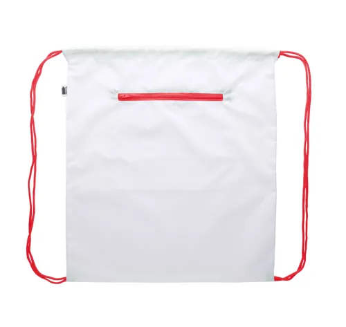 Egyedi gyártású hátizsák, zsinórfüles vállpánttal, cipzáras zsebbel, 190T RPET poliészter. Teljes felületén szublimációs eljárással emblémázva. Megkülönböztető RPET címkével. Minimális rendelési mennyiség: 25 db.
