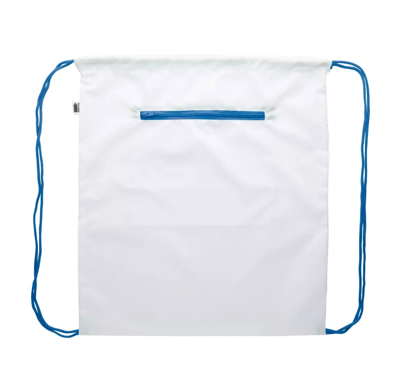 Egyedi gyártású hátizsák, zsinórfüles vállpánttal, cipzáras zsebbel, 190T RPET poliészter. Teljes felületén szublimációs eljárással emblémázva. Megkülönböztető RPET címkével. Minimális rendelési mennyiség: 25 db.