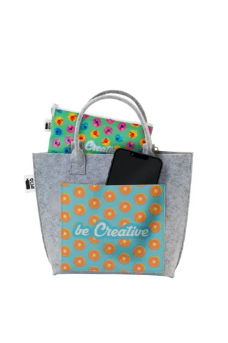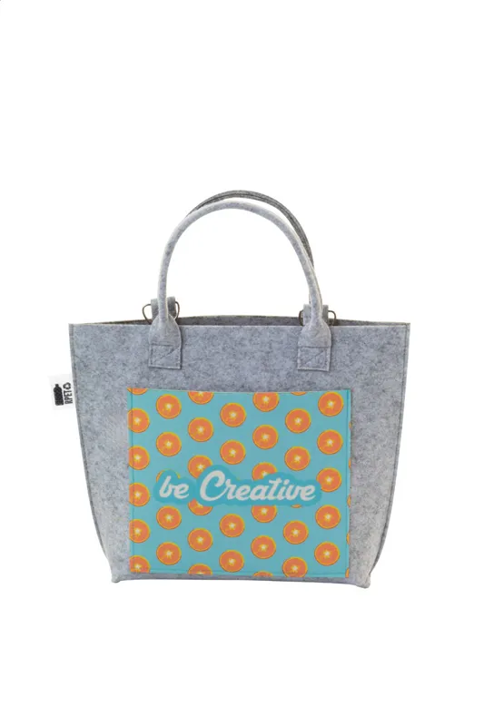 Egyediesíhető, RPET filcből készült női válltáska, full colour emblmázható elülső zsebbel. Rövid hordfüllel, levehető vállpánttal és megkülönböztető RPET címkével. Az ár tartalmazza a szublimációs emblémázást. Minimális rendelési mennyiség: 25 db.