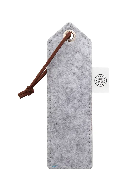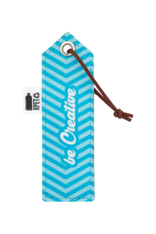 Egyediesíthető, RPET filcből készült könyvjelző, full colour emblémázható előlappal és PU bőr zsinórral. Megkülönböztető RPET címkével. Az ár tartalmazza a szublimációs emblémázást. Minimális rendelési mennyiség: 100 db.