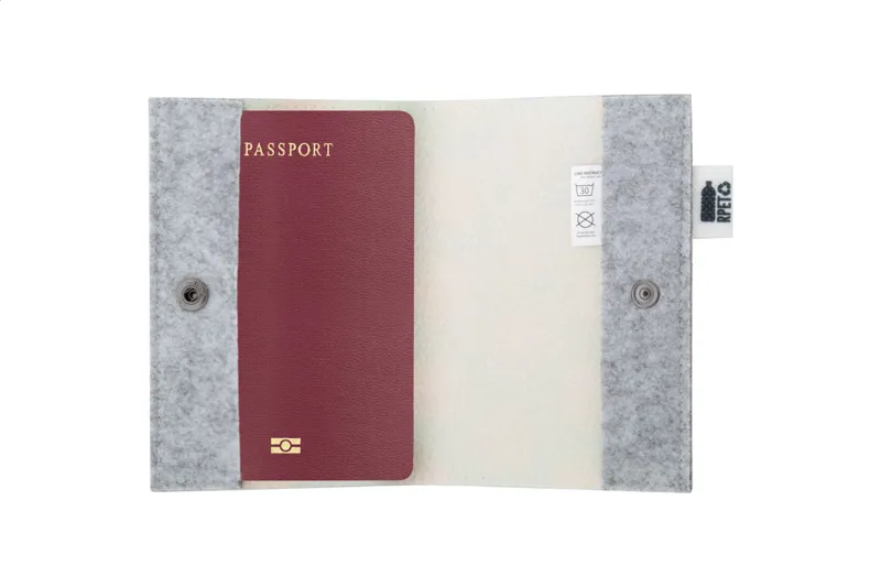 Egyedi gyártású, RPET filc útlevéltartó full-colour emblémázható borítóval és patentos záródással. Megkülönböztető RPET címkével. Az ár tartalmazza a szublimációs emblémázást. Minimális rendelési mennyiség: 50 db.