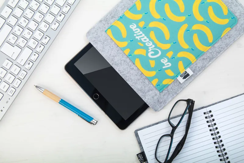 Egyedi gyártású RPET filc tablettartó (11"), full-colour emblémázható elülső zsebbel és megkülönböztető RPET címkével. Az ár a szublimációs emblémázást tartalmazza. Minimális rendelési mennyiség: 25 db.