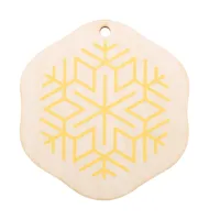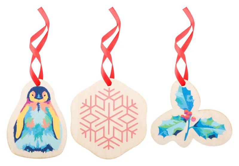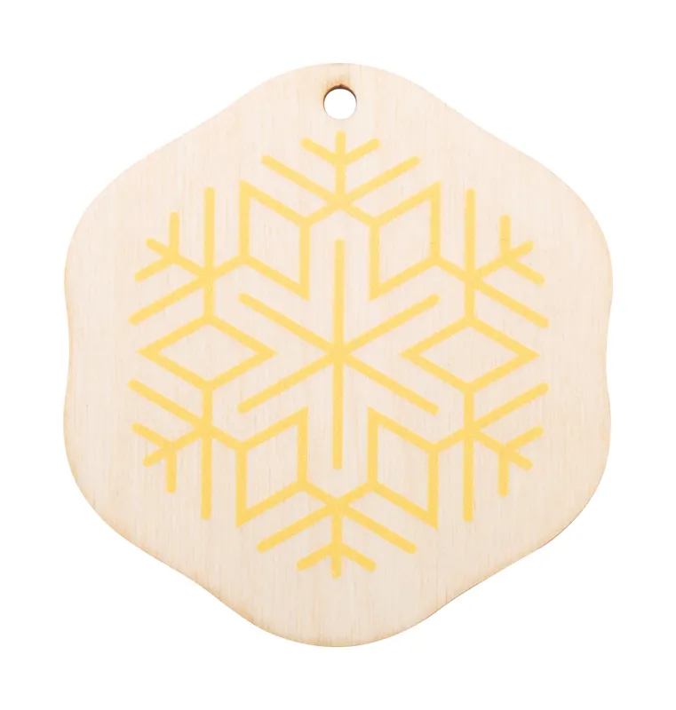 Nyírfából készült karácsonyfadísz egyedi formával és full colour emblémázással. Maximum méret: 80x80 mm. Az ár tartalmazza az UV nyomtatás költségét az egyik oldalon. A szalagot mellé csomagolva szállítjuk. Minimális rendelési mennyiség: 100 db.
