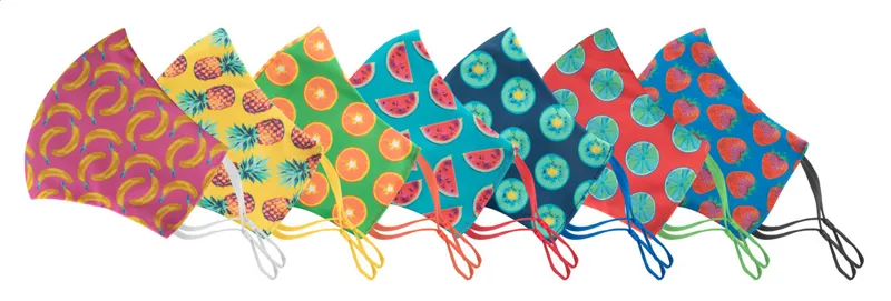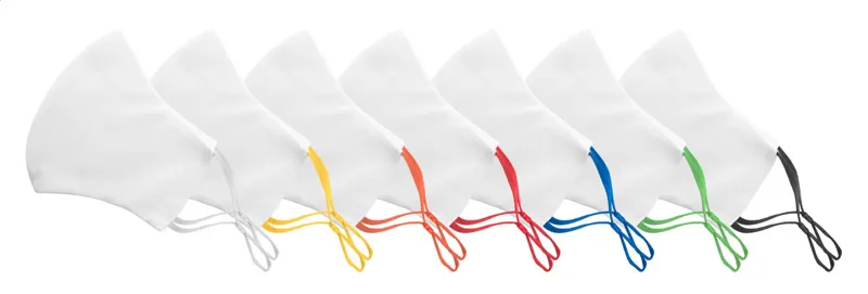 Egyediesíthető, mosható és újrafelhasználható kétrétegű maszk állítható, rugalmas pántokkal és szublimációs nyomtatott grafikákkal. Felnőtt méretben. 100% poliészter (140 g/m²) és 100% pamutból (140 g/m²) készült. Az ár tartalmazza a szublimációs eljárást. Min. rendelési mennyiség: 50 db.