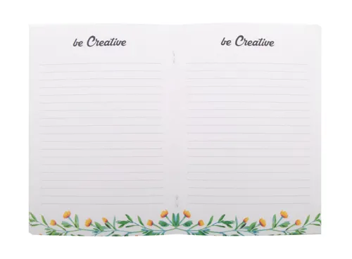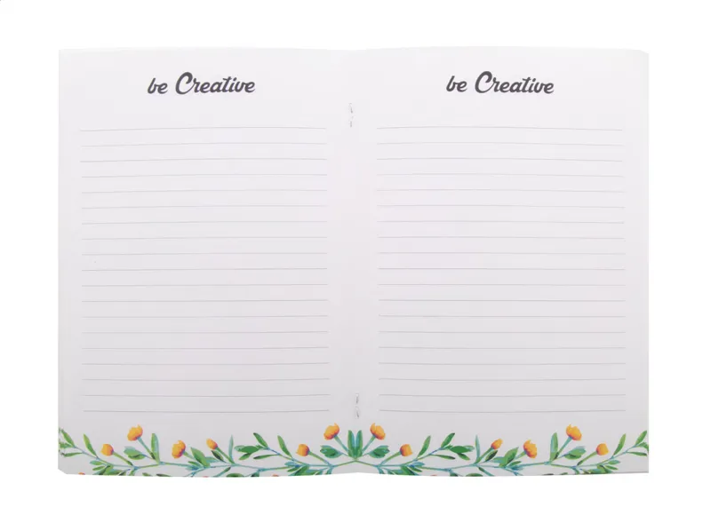 Egyediesíthető, A5 méretű jegyzetfüzett újrahasznosított papír borítóval, 32 újrahasznosított papírlappal. Az ár tartalmazza a borító full colour emblémázását és egy további mintát minden belső oldalon. Minimális rendelési mennyiség: 100 db.