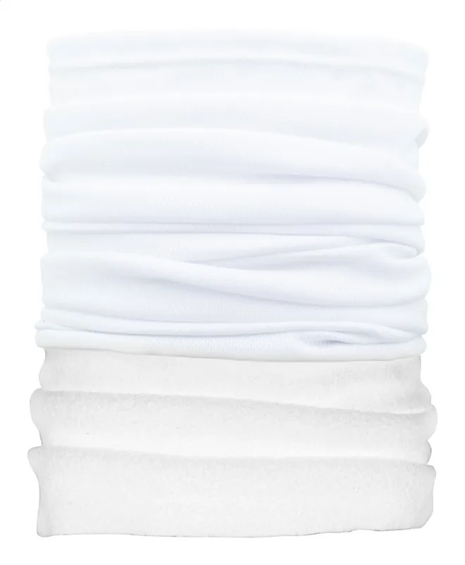 Egyediesíthető multifunkciós sál légáteresztő és gyorsan száradó poliészterből, színes polár nyakmelegítővel. A poliészter részen teljes egészében szublimációs nyomtatással készült grafikával. 100% poliészter (135 g/m²) és polár (160 g/m²) anyagból. Minimális rendelési mennyiség: 100 db.