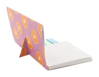 Egyedi gyártású papír jegyzetadagoló függőleges fejléccel. 50 újrahasznosított papírból készült cetlit (75×75 mm) és 100 műanyag oldaljelölőt tartalmaz, 5 különböző színben (44×12 mm). Az ár tartalmazza a teljes színes nyomtatást a fejlécre. Minimális rendelési mennyiség: 100 db.