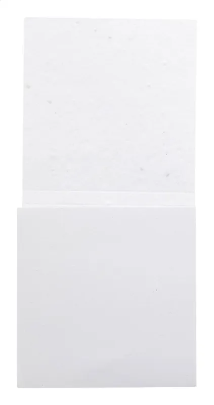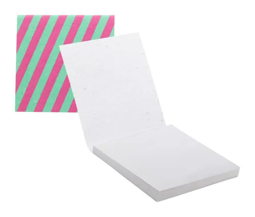 Egyediesíthető, magpapírral borított öntapadós jegyzettömb. Tartalmaz 50 újrahasznosított papír öntapadós jegyzetlapot (75×75 mm). Az ár tartalmazza a külső borító full-colour nyomtatását. Minimális rendelési mennyiség: 100 db. Válogatott vadvirágmagokkal.