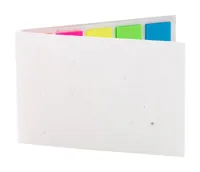 Egyediesíthető, magpapírral borított öntapadós jegyzettömb. Tartalmaz 100 műanyag fólia oldaljelölőt 5 különböző színben (44×12 mm). Az ár tartalmazza a külső borító full-colour nyomtatását. Minimális rendelési mennyiség: 100 db. Válogatott vadvirágmagokkal.