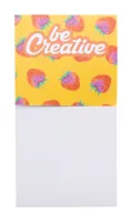 Egyedi gyártású, papírból készült öntapadós jegyzettömb adagoló függőleges fejléccel. 50 újrahasznosított papírból készült öntapadós jegyzetlapot tartalmaz (75×75 mm). Az ár tartalmazza a tartó full colour nyomtatását. Minimális rendelési mennyiség: 100 db.